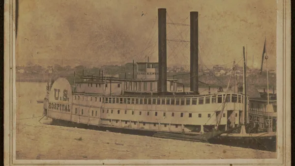 The commission and its base in St. Louis stemmed from early ravages of war in Missouri in the summer of 1861, which led to urgent preparations to provide care to people seeking treatment in St. Louis, and selection of St. Louis as Headquarters of the Military Department of the West. Sick and wounded civilians, soldiers and freedmen pouring into St. Louis overwhelmed its hospitals and mobilized civic leaders in their aid. The commander in St. Louis, General Fremont, formally established the Western Sanitary Commission and four of its five chosen commissioners had ties to WashU, then in only its eighth year. Yeatman led the commission as president and Eliot played a crucial role raising funds for the effort. The commission speedily assembled a medical facility and headquarters named City General Hospital, and established field hospitals and refugee camps throughout the river valley, including innovative railroad hospital cars and steamships converted to floating hospitals, such as the City of Louisiana steamer pictured above.